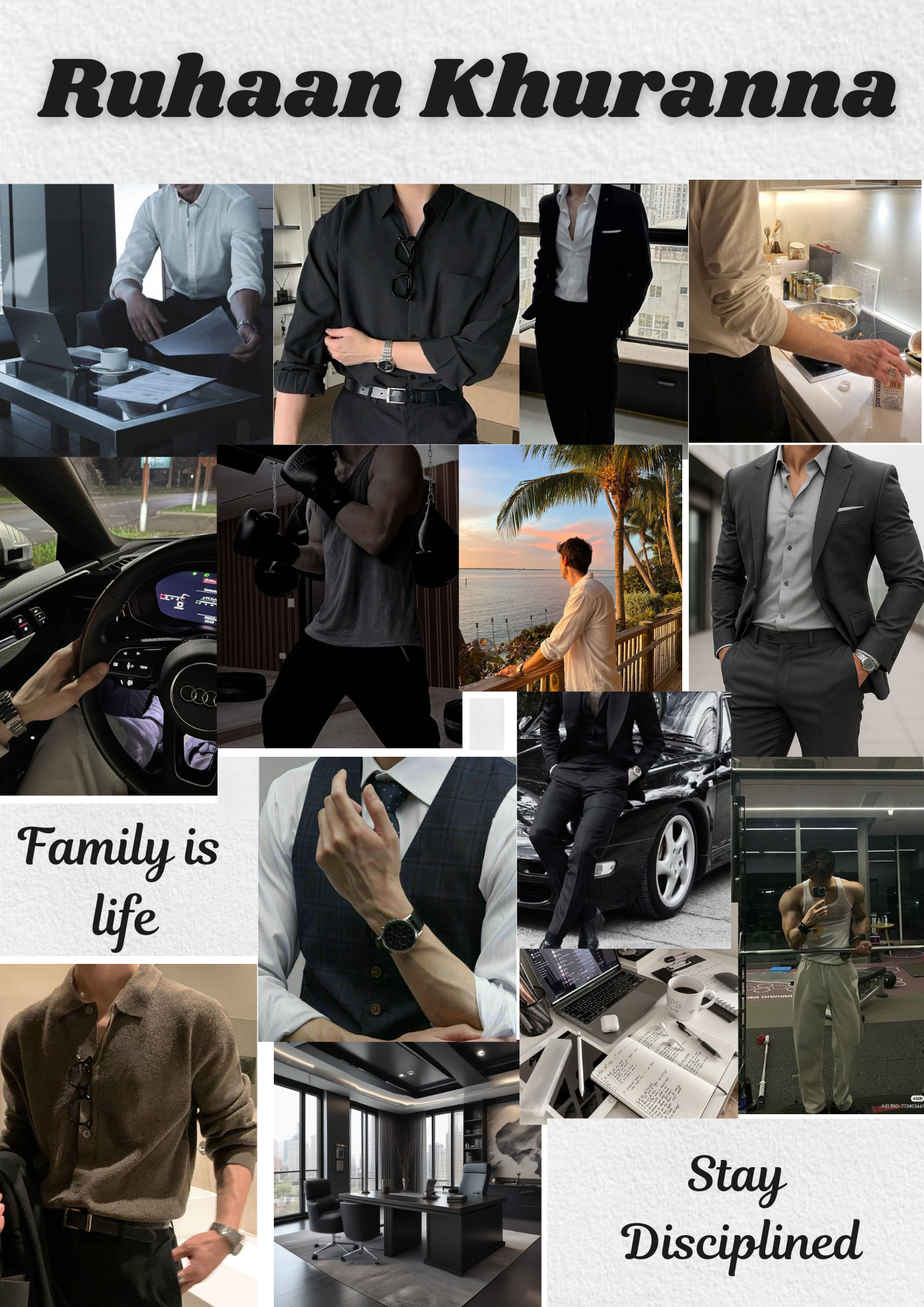 Ruhaan Khuranna, is a 40 year old successful and wealthy businessman. He is strict , cold and believes in discipline. His soft side is reserved for his family. He had to face a devastating tragedy and life has made him cold and untrusting. His family is the light in his darkness and his everything.